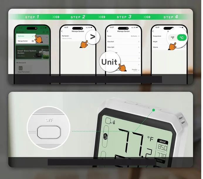 - Łączność Bluetooth i Aplikacja: Dzięki synchronizacji z telefonem możesz przeglądać wykresy historyczne, analizować zmiany warunków w ciągu dnia i otrzymywać powiadomienia, gdy parametry wykroczą poza ustalone normy.