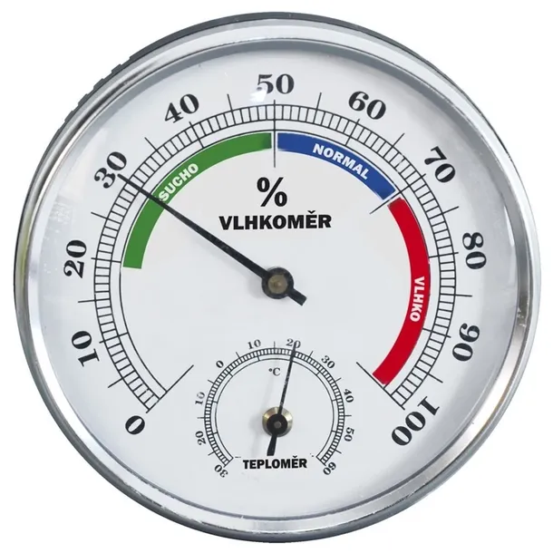 Higrometr z termometrem, wykonany z wytrzymałego tworzywa. Pozwala monitorować wilgotność powietrza i temperaturę, zarówno w pomieszczeniu, jak i na zewnątrz.