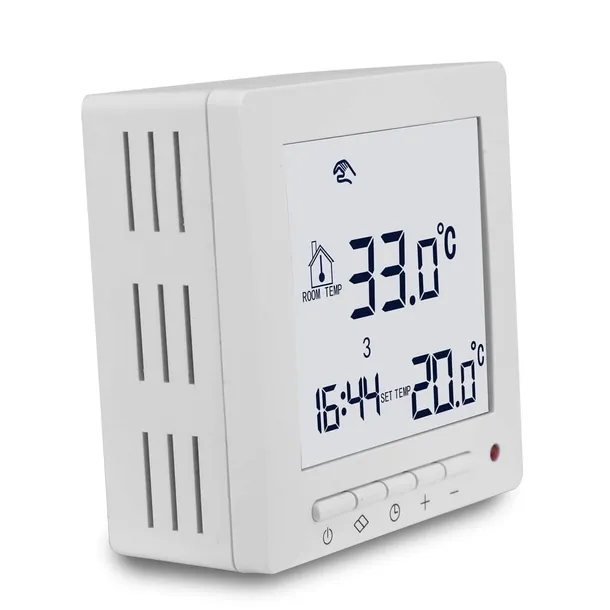 Termostat elektroniczny optymalizuje zużycie energii elektrycznej załączając ogrzewanie wyłącznie w czasie użytkowania pomieszczeń, unikając bezproduktywnego ogrzewania pomieszczeń.