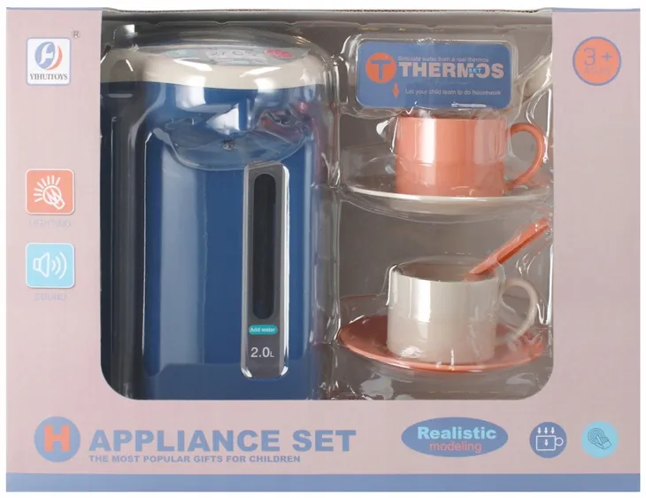 Zalety produktu: termos wydaje charakterystyczne dźwięki jak prawdziwy ekspres, posiada efekty świetlne i dźwiękowe, po uzupełnienie termosu wodą, naciskając odpowiedni przycisk z dozownika leje się woda dzięki czemu można imitować proces nalewania napoju do filiżanki. W chłodne jesienno-zimowe dni najlepiej smakuje gorąca herbata. Pozwól dziecku na zabawę własnym termosem od MEGA CREATIVE Produkt ten idealnie odzwierciedla prawdziwy sprzęt kuchenny. Wspaniałe kolory i wspaniała zabawa. Zawartość zestawu: termos, 2 x filiżanki, 2 x talerzyki pod filiżanki, 2 x łyżeczki. Całość wykonana z plastiku. Wymiary/waga/baterie: wymiary produktu dł. x wys. gł. cm : 10x16x14, wymiary opakowania dł. x wys. x gł. cm : 25x19x15, waga produktu bez opakowania kg : 0,32 kg, waga produktu w opakowaniu kg : 0,54 kg, wymaga zasilania bateriami 3 x AALR06- nie załączono do zestawu. Przeznaczony dla dzieci w wieku 3 . Pakowany w kartonik z okienkiem. W kartonie zbiorczym po 12 szt.