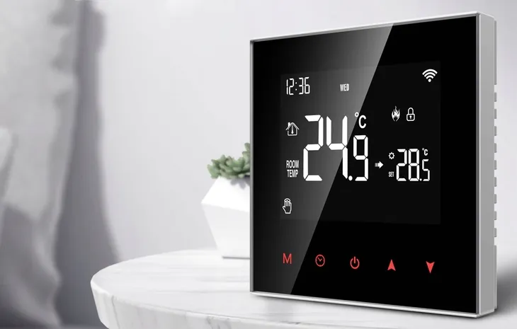 Został wyposażony w sensor NTC, który odpowiada za dokładność temperatury do 1°C. Pozwala włączyć lub wyłączyć element wykonawczy, który kontroluje dostarczanie ciepłej wody do ogrzewania pomieszczenia. Posiada wbudowany moduł Zigbee i współpracuje z Tuya, Smart Life, Amazon Alexa, Google Assistant, Yandex Alice itp.
