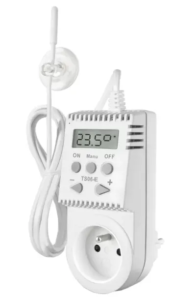 TERMOSTAT REGULATOR TEMPERATURY DO GNIAZDKA Z ZEWNĘTRZNYM CZUJNIKIEM TS06-E