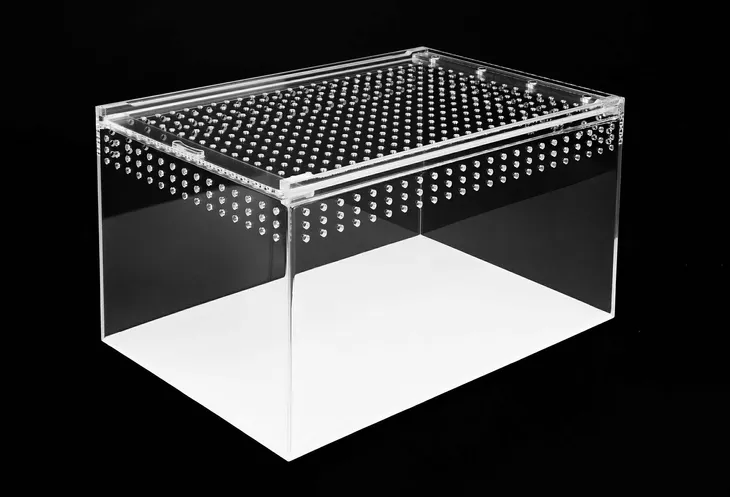 Terrarium akrylowe, dzięki swojej doskonałej przejrzystości, bez efektu załamywania się światła zapewni nam bezproblemowy podgląd wnętrza zbiornika, czyniąc go praktycznym i estetycznym.