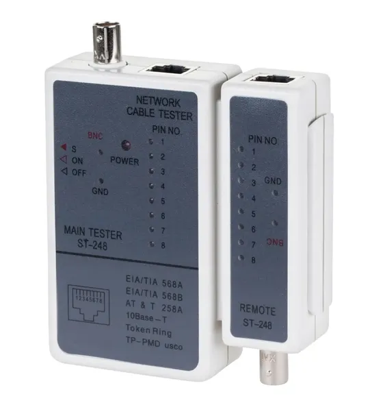 Tester ciagłości obwodów: kabli komputerowych (skrętka) kabli koncentrycznych (złączach na BNC).