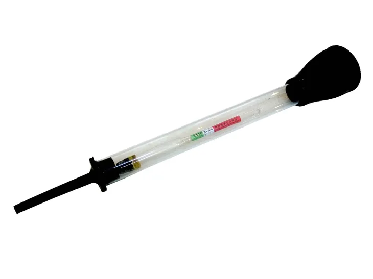 - Zastosowanie: do sprawdzania stężenia kwasu. Wykonuje się to poprzez pomiar gęstości elektrolitu, co jest możliwe dzięki pomiarowi gęstości elektrolitu. Im większe stężenie kwasu siarkowego, tym bardziej staje się gęsty elektrolit. Im wyższa jest gęstość, tym wyższy jest stan naładowania.