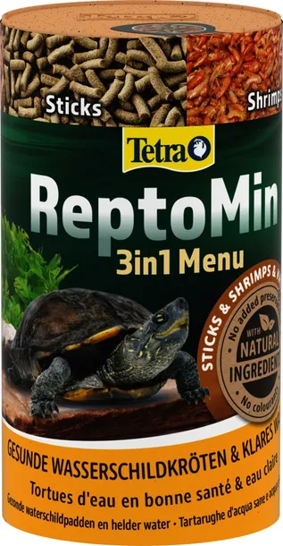 Zapewnia zróżnicowane i dostosowane do potrzeb gatunku pożywienie. Karma marki Tetra to kombinacja niezbędnych składników odżywczych, zapewniających żółwiom odpowiednią dawkę energii do codziennego funkcjonowania. Bogaty skład karmy zawiera m.in. kryla, który wspomaga zdrowy wzrost oraz krewetki ułatwiające trawienie. Pokarm dla żółwi wodnych Tetra ReptoMin Menu zawiera także substancje wzmacniające skorupę i kości.Skład