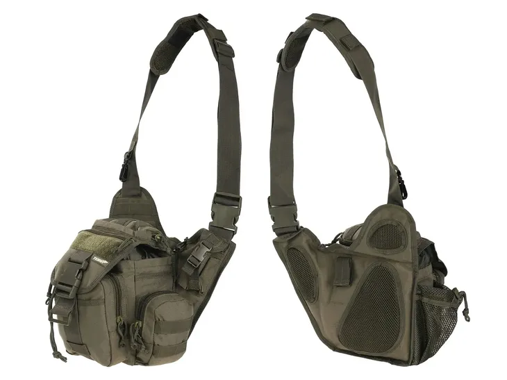 Wielofunkcyjna, uniwersalna torba biodrowa z możliwością noszenia na ramieniu lub pasie. Znajdzie szerokie zastosowanie w warunkach poligonowych i w życiu codziennym. Idealna na zapasową odzież, aparat, telefon, okulary, portfel, butelkę wody, kanapki. Rozbudowany system kieszeni i przegród ułatwia spakowanie oraz organizację ekwipunku. Pojemna komora ładunkowa przystosowania do przenoszenia ciężkich i obszernych przedmiotów. Komora główna z wydzielonymi przegrodami, materiałową oraz z siatki. Komora główna zamykana na ściągany komin i regulowaną klapę. Na klapie od zewnątrz i wewnątrz wszyto kieszenie zapinane na zamek. Duża, płaska kieszeń na dokumenty i cenne przedmioty, ukryta pod główną komorą. Dwie kieszenie różnej wielkości od frontu, zamykane na ekspresy. Większa z kieszeni posiada wydzieloną przegrodę z siatki oraz taśmę z karabinkiem do zabezpieczenia kluczy. Mniejsza kieszonka z wewnętrzną przegrodą. Dwie przegrody zewnętrzne umieszczone od frontu. Boczna kieszeń z siatki, idealna na akcesoria lub butelkę wody, zamykana na ściągacz sznurowy ze stoperem. Kieszonka na kompas i przybory do pisania, zamykana na patkę z klamrą.