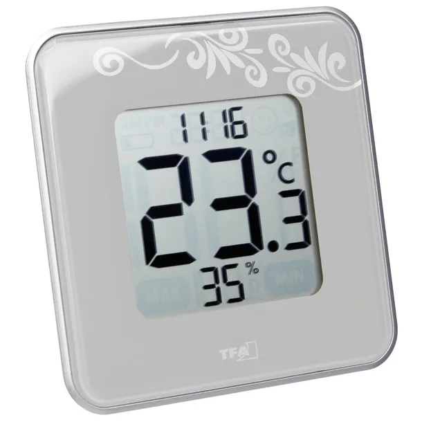 Nowoczesny termometr cyfrowy TFA 30.5021.02 łączy w sobie stylowy design z praktycznymi funkcjami pomiaru temperatury i wilgotności. Idealny do użytku wewnętrznego, zapewnia dokładne i czytelne wskazania na dużym wyświetlaczu.