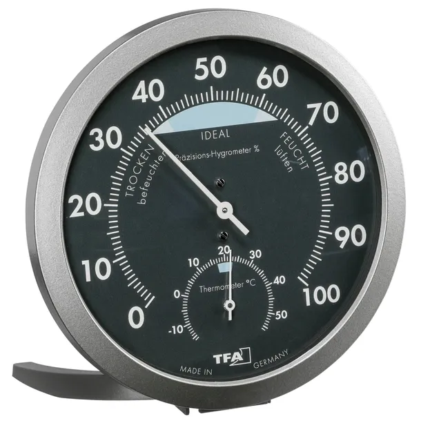 Precyzyjny termohigrometr TFA 45.2043.51 to idealne urządzenie do monitorowania temperatury i wilgotności powietrza w pomieszczeniach, zapewniające zdrowy klimat.