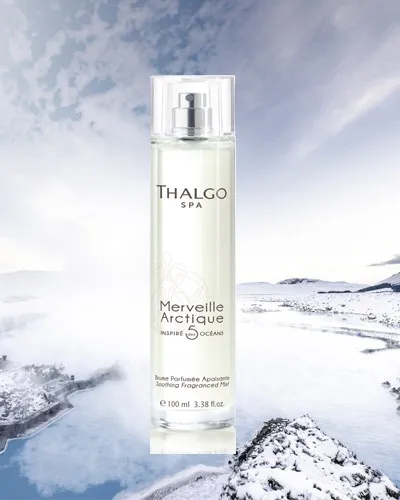 Zawierająca borealne algi i ekstrakt z kwiatu bezu, kojąca mgiełka łagodzi ciało i umysł, pozostawiając na skórze magię zapachu śniegu. Jej kryształowo przejrzysta tekstura sprawia, że łatwo się wchłania, a efekt kojącego ciepła i orzeźwiającego chłodu zapewnia maksymalne odprężenie.