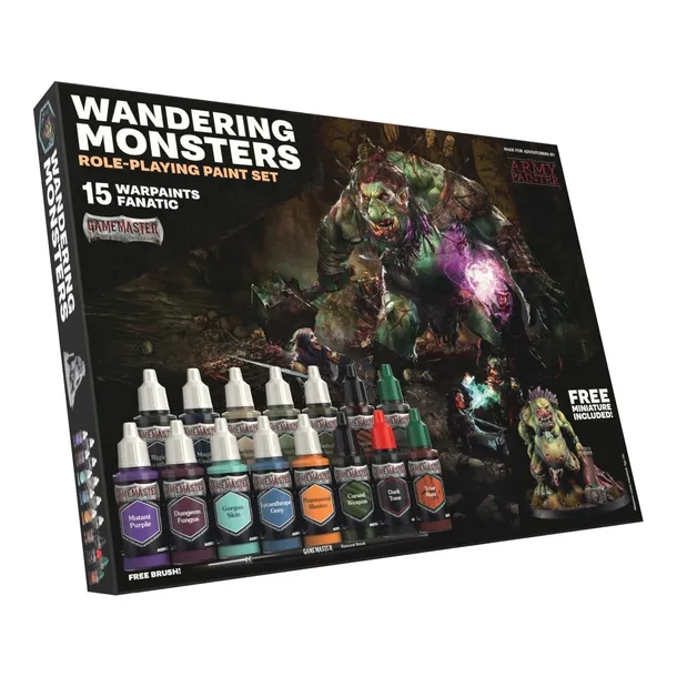 The Army Painter: GameMaster - Wandering Monster Set to zestaw zawierający bardzo szczegółową figurkę trolla, pędzel, przewodnik po malowaniu, 10 podstawowych farb, 2 farby Effect, 2 farby Wash i 1 farbę Metallic.