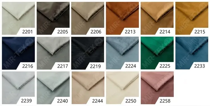 Tkanina Magic Velvet z kolekcji Mir-tex24 wyróżnia się bogatą paletą soczystych kolorów, które dodają energii każdemu pomieszczeniu, obok subtelnych odcieni błękitu, zieleni, różu i szarości. Jej przyjemna, miękka faktura w dotyku łączy się z charakterystycznym połyskiem velvety, tworząc efekt, który idealnie podkreśla meble tapicerowane i dekoracyjne akcesoria, zapewniając trwały, estetyczny wygląd na lata.