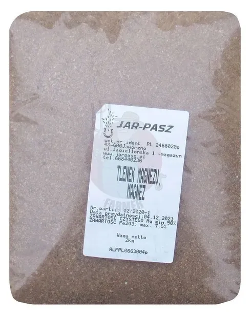 Zawartość aktywnego tlenku magnezu ok 90% (tlenek magnezu min 50%, żelazo 7,5%)