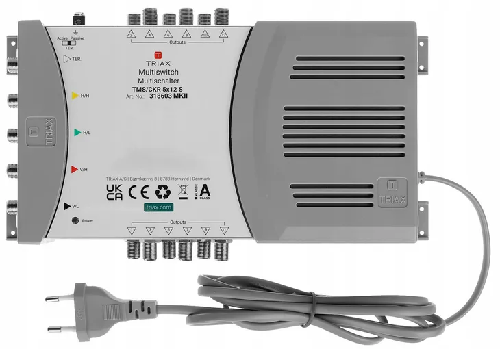 Multiswitch końcowy z zasilaczem, na 1 satelitę (5 wejść / 12 wyjść), dla małych i średnich instalacji RTV/SAT