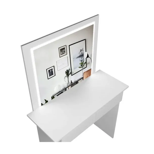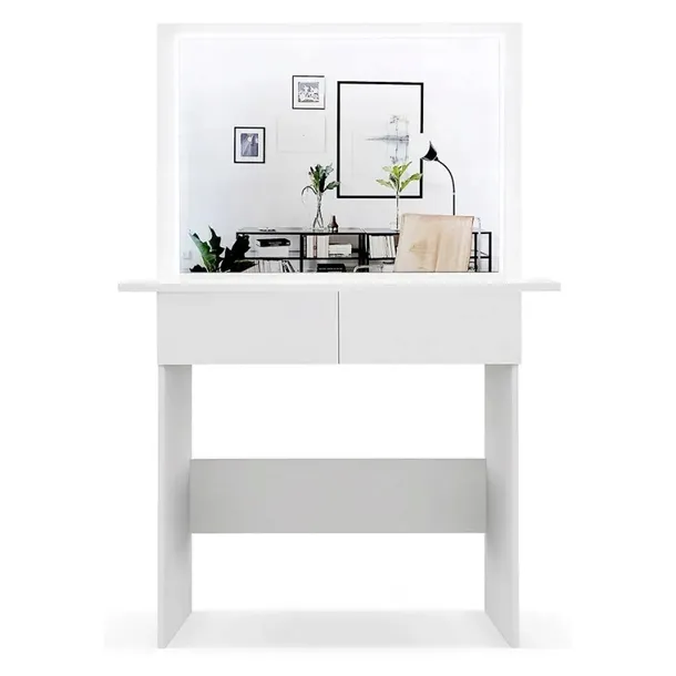 Wykonana z wysokiej jakości płyty laminowanej o grubości 16 mm odpornej na ścieranie i zarysowania, oklejona obrzeżem ABS. Duże odpowiednio oświetlone lustro, Wygodny przestronny blat o długości 94 cm, 2 szuflady mogące pomieścić wiele kosmetyków.