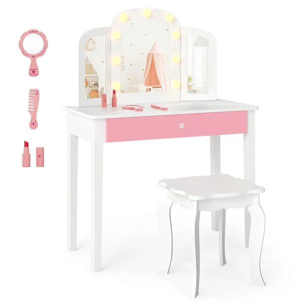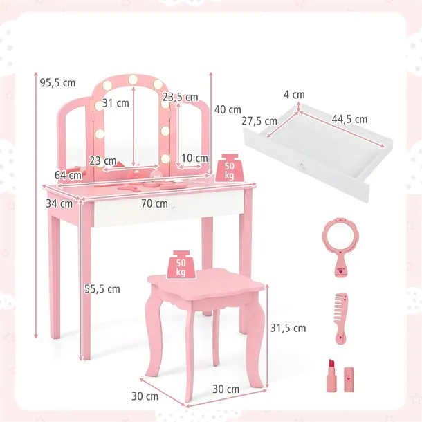Toaletka dziecięca z oświetleniem i taboretem Toaletka do makijażu