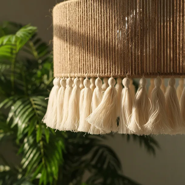 Lampa Wisząca 40cm Boho Naturalna Brązowa Sznurek Jutowy Frędzle App1735