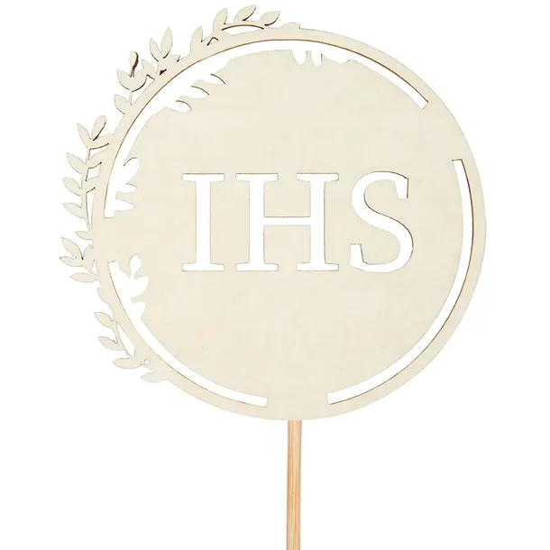 - Litery IHS z motywem liści.