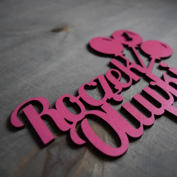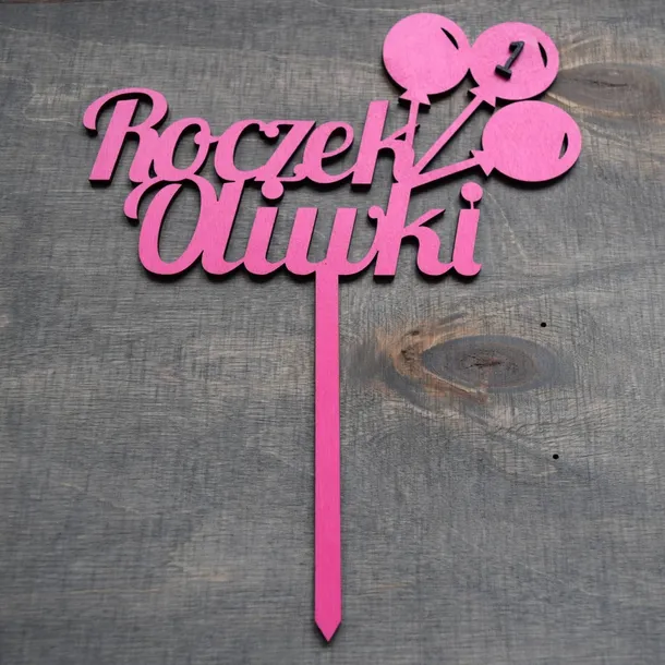 Topper na roczek. Wykonany ze sklejki 3mm, ręcznie malowany na wybrany przez Państwa kolor. Elementy ozdobne w postaci baloników dodają mu uroku. Cyferka w kolorze czarnym naklejona na topper daje efekt 3d.