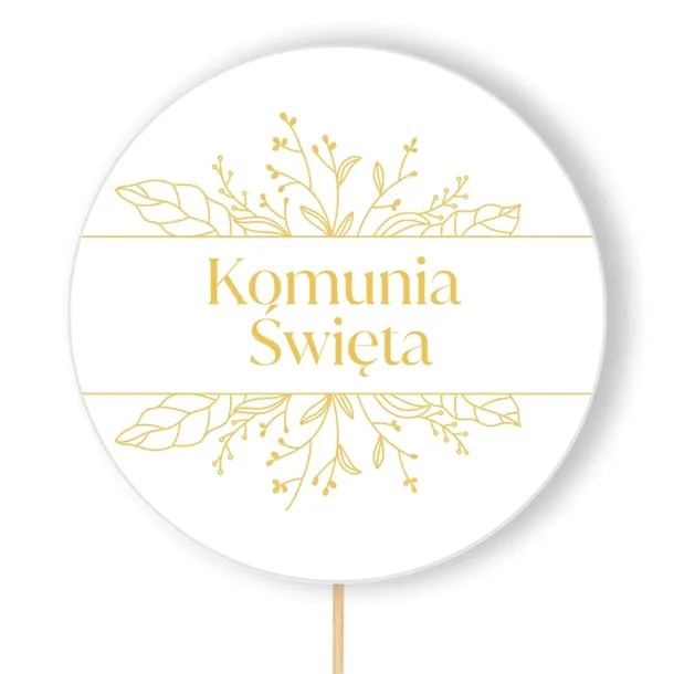 - Nadruk: Złote gałązki, na środku "Komunia Święta".