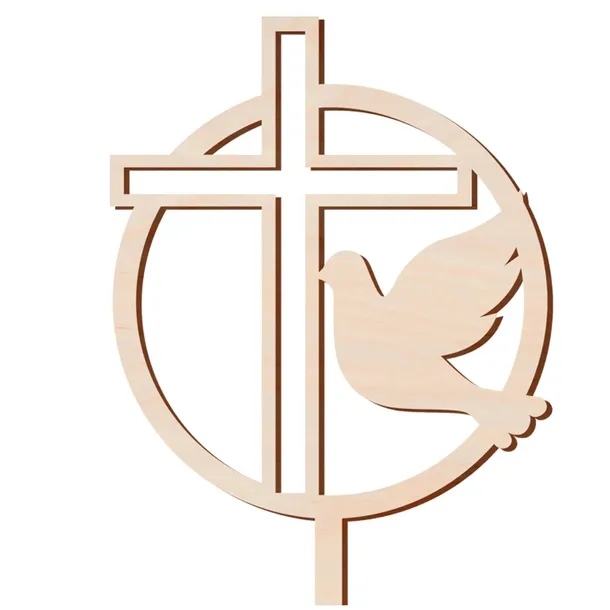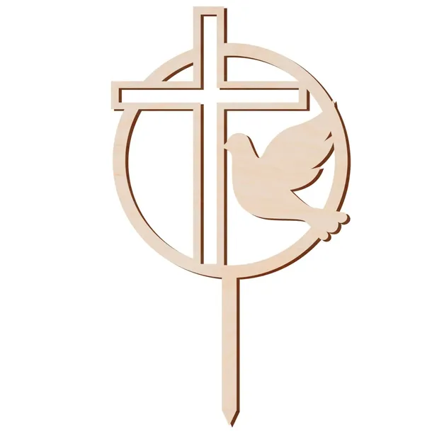 Topper ze sklejki z gołębiem i krzyżem
