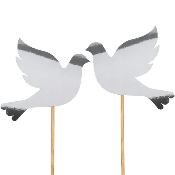 - Piękny komunijny zestaw topperów składający się z dwóch sztuk gołąbków na drewnianych patykach.