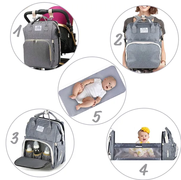 Zestaw 5w1: TORBA DO WÓZKA | KLASYCZNY PLECAK | ORGANIZER NA AKCESORIA | KOJEC DO ZABAWY | PRZEWIJAK