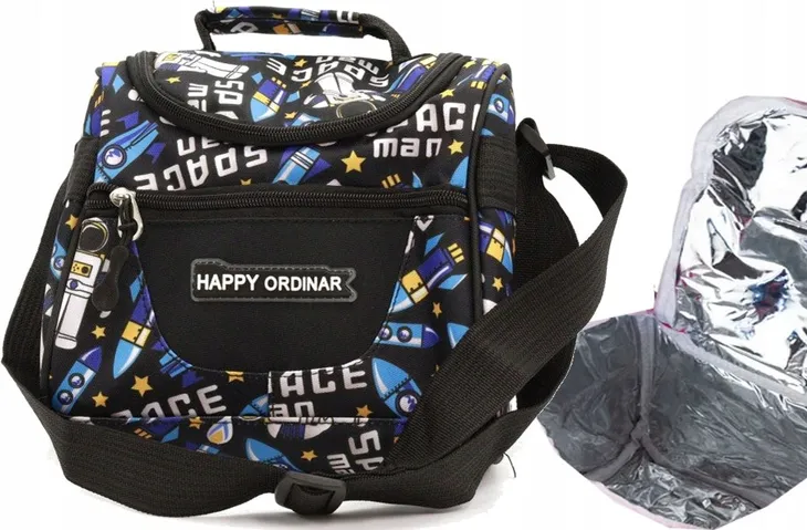 Torba lunch box, długi pasek, w środku folia aluminiowa, 23x22x15cm