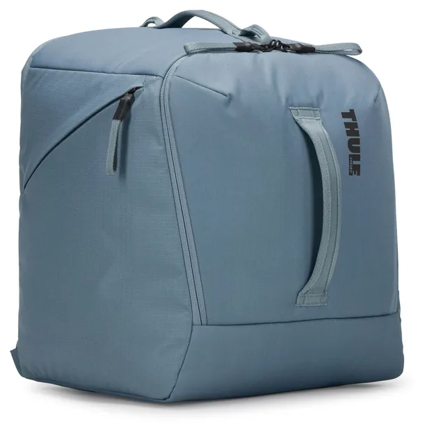 W torbie na buty Thule RoundTrip 35L zmieszczą się nie tylko buty, ale także kask, gogle i rękawice. Można ją nosić na ramieniu lub trzymając za uchwyt. Można ją także przypiąć do torby na kółkach Thule RoundTrip na narty i snowboard, aby swobodnie przemieszczać się po lotnisku.