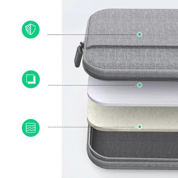 Wygodna i designerska torba na laptopa marki Ugreen to podstawowe wyposażenie każdego, kto chce swobodnie korzystać ze swojego urządzenia. Wewnętrzne warstwy wykonane z miękkiego materiału chronią sprzęt przed zarysowaniem. Trójwarstwowa konstrukcja to najlepszy wybór. Zewnętrzna warstwa zapewnia wysoki poziom ochrony przed wilgocią czy zalaniem wodą. W razie deszczu Twój laptop będzie bezpieczny. Estetyczny wygląd gadżetu jest pewny przez długi czas, po nie jest on podatny na zarysowania. Środkowa warstwa to cienka i delikatna pianka amortyzująca wstrząsy. Od wewnątrz jest wyściółka z miękkiego materiału, chroniąca obudowę przed zarysowaniami. Wewnątrz torby, oprócz przegródki na laptopa, znajduje się też szereg kieszonek na drobiazgi. Torba jest wyposażona w dwa uchwyty, które idealnie leżą w dłoni. W zależności od preferencji możesz trzymać ją także od spodu - jak teczkę.
