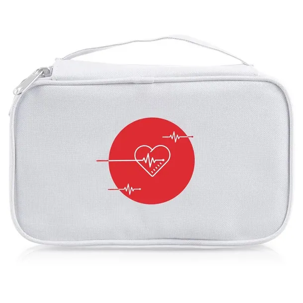 Praktyczna torba na leki - Praktyczna torba zapinana na podwójny zamek, przeznaczona do przechowywania i krótkotrwałego transportu leków, syropów, zastrzyków czy wyposażenia medycznego. Torba ma wymiary 23,5 x 14 x 8,5 cm. Torba z serii Termo.