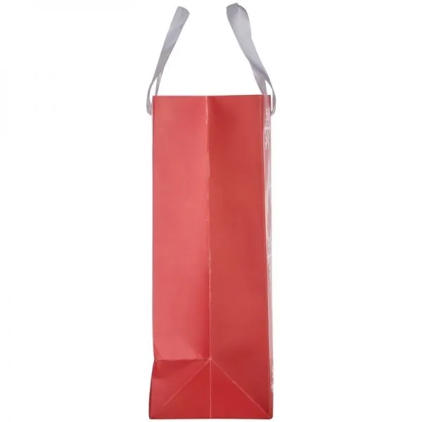Świąteczna, papierowa torba na prezenty z dwoma uchwytami, z motywem śnieżynek.