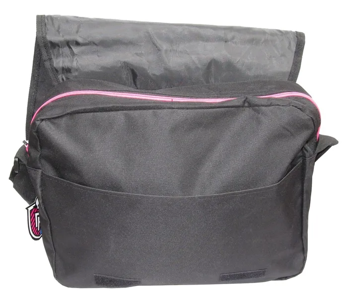 Posiada pasek z regulacją długości oraz z gąbkową osłoną ramienia.