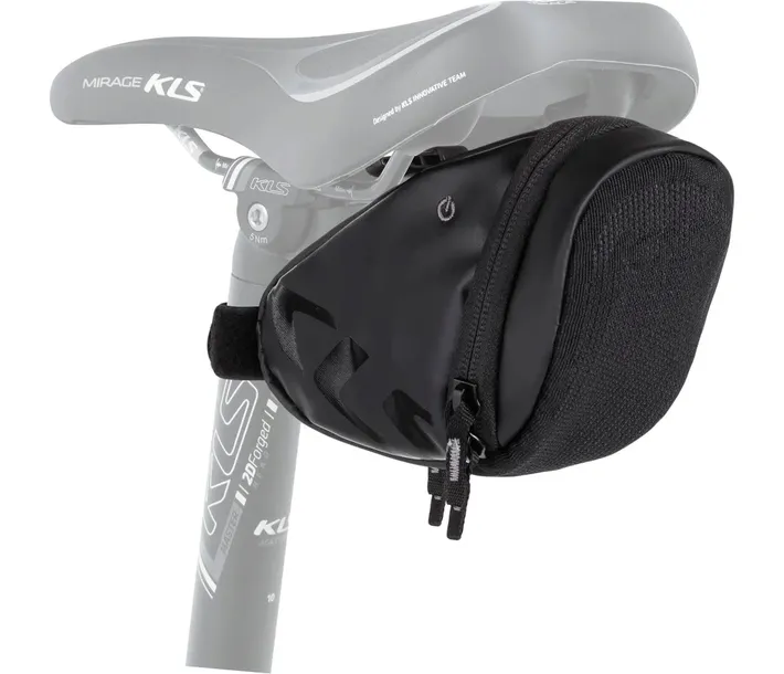 Torba KLS SLOPPER została wykonana z wytrzymałego i wodoodpornego materiału Brezent. Elementy odblaskowe na torbie zwiększają widoczność i bezpieczeństwo rowerzysty. Tylna część torby wykonana jest z lekkich włókien, które są zasilane przez akumulator USB, zapewniając do 4 godzin użytkowania. Torba KLS SLOPPER jest montowana za pomocą opatentowanego uchwytu T, bez konieczności użycia narzędzi.