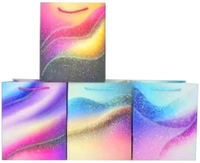 Odkryj nasz wyjątkowy zestaw 12 toreb prezentowych, które sprawią, że każdy upominek będzie wyglądał spektakularnie. Każda torba ozdobiona jest unikalnym, brokatowym wzorem w różnobarwnych odcieniach, mieniących się w świetle i przyciągających wzrok. Torby charakteryzują się solidnym wykonaniem i wygodnymi uchwytami, zapewniającymi bezpieczeństwo przenoszenia zawartości. To idealne rozwiązanie do pakowania prezentów na urodziny, święta, rocznice czy inne specjalne okazje, dodając im nutę magii i wyrafinowania. W opakowaniu zbiorczym znajduje się 12 sztuk, co zapewnia zapas na wiele radosnych chwil. Cena dotyczy jednej sztuki.
