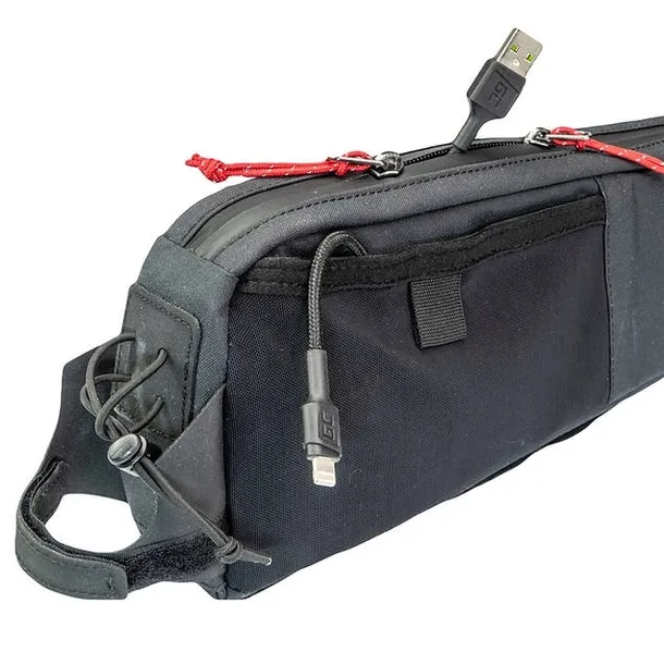 Z łatwością naładujesz swoją nawigację, telefon lub lampkę dzięki wyjściu na kabel. Otwór jest umieszczony w bocznej kieszonce, dzięki czemu kabel jest zabezpieczony kiedy go nie używasz. Umieść w Płetwie powerbanka i korzystaj z elektroniki bez przeszkód i latających kabli o które ocierasz kolanami lub haczą się o każdy krzak.