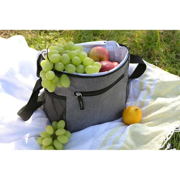 Torba termoizolacyjna, komora główna i przednia kieszeń zamykane na zamek błyskawiczny, 2 boczne kieszenie siateczkowe, uchwyt do noszenia oraz regulowany pasek na ramię