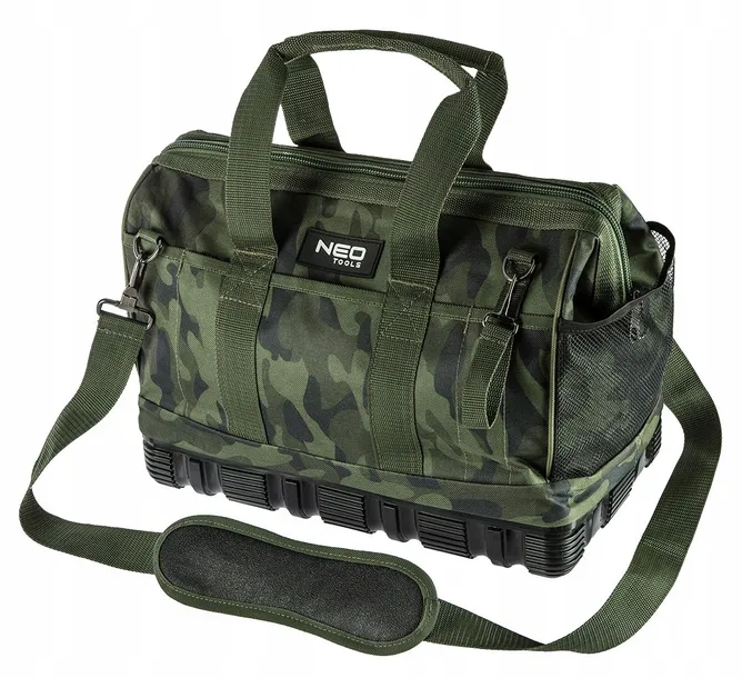 ✔️ Torba narzędziowa NEO o wymiarach 40 x 22 x 33 cm. Wykonana z nylonu 600 D, gwarantującego długoletnią trwałość torby. Posiada usztywniane, wododporne dno chroniące zawartość podczas pracy w trudnych warunkach. Torba wyposażona jest w mocny uchwyt oraz pasek do przenoszenia. Marka NEO spełnia oczekiwania profesjonalistów.