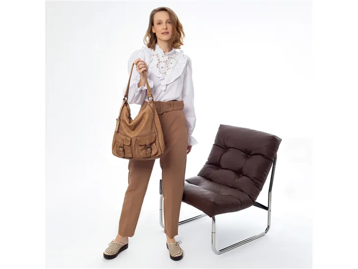 Torba z dwiema kieszonkami Toscanio E42 to elegancka i praktyczna propozycja dla nowoczesnych kobiet, które cenią sobie styl i funkcjonalność. Wykonana z wysokiej jakości skór licowych vintage, torba w kolorze rudym doskonale wpisuje się w aktualne trendy modowe, zapewniając jednocześnie trwałość i wygodę użytkowania. Jej wymiary wynoszą 32 cm wysokości, 31 cm szerokości oraz 9 cm głębokości, co czyni ją idealnym wyborem na codzienne wyjścia, a także na spotkania biznesowe. Długi pasek o długości 120 cm oraz uchwyty o długości 50 cm umożliwiają noszenie torby na wiele sposobów, dostosowując ją do indywidualnych preferencji. Torba posiada jedną pojemną komorę oraz dwa kieszenie wewnętrzne, co gwarantuje wygodny dostęp do najważniejszych drobiazgów. Zewnętrzna część torby wyposażona jest w trzy kieszenie, które dodatkowo zwiększają jej funkcjonalność. Zapięcie na metalowy zamek zapewnia bezpieczeństwo przechowywanych przedmiotów, a eleganckie wykończenie dopełnia całości. Idealna na co dzień, do pracy , torba Toscanio E42 łączy w sobie klasyczny design z praktycznymi rozwiązaniami, co czyni ją niezbędnym akcesorium w szafie każdej kobiety. Skóra prana może wykazywać różnorodność faktury oraz kolorytu, co jest wynikiem naturalnych właściwości materiału i nie stanowi wady produktu. Taka charakterystyka podkreśla unikalność i autentyczność każdej torebki wykonanej z tego typu skóry.