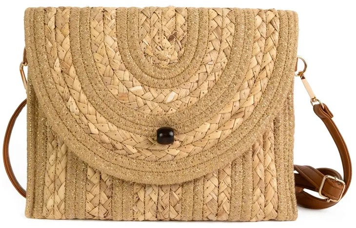 Mała torebka na lato wykonana z naturalnych materiałów.