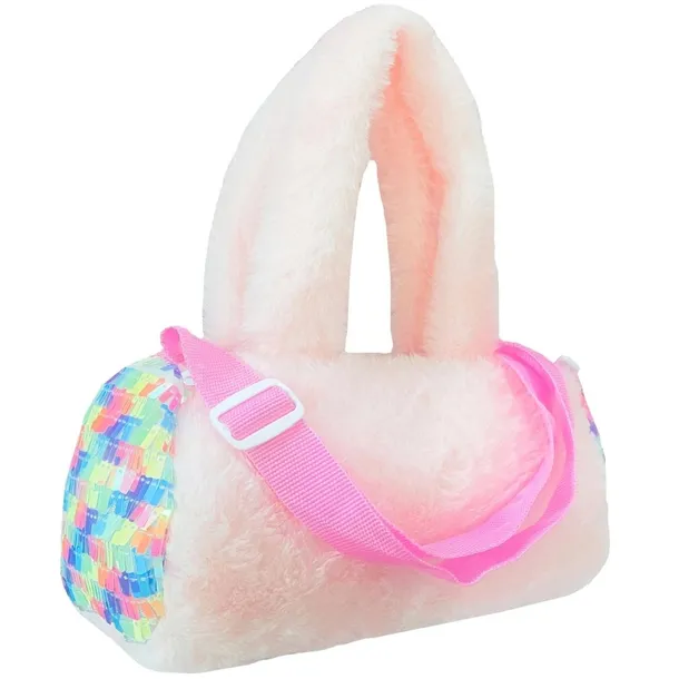 Puszysta Torebka - Różowa z Holograficznymi Cekinami!Przedstawiamy uroczą i mięciutką Torebkę - idealny dodatek dla małej modnisi! Ta torebka to połączenie słodyczy i nowoczesnego blasku, które z pewnością zachwyci każde dziecko.Magia Króliczka i CekinówTorebka łączy dwa ulubione elementy dziecięcej mody:Puszysty Materiał: Główna część torebki wykonana jest z miękkiego, delikatnego, puszystego materiału w jasnym, różowym kolorze.Efekt Blasku: Boki torebki (lub tylko jeden bok) ozdobione są wielobarwnymi, holograficznymi cekinami (sequins). Cekiny mienią się na różne kolory - od niebieskiego, przez żółty, po różowy - tworząc efektowny i tęczowy akcent.Cechy i Funkcjonalność:Pasek na Ramię: Torebka wyposażona jest w regulowany, różowy pasek na ramię z plastikową białą sprzączką, co pozwala na wygodne noszenie jej na ukos (crossbody) lub na ramieniu.Wygodne Uchwyty: Dodatkowe, puszyste uchwyty w kształcie uszu umożliwiają noszenie torebki w dłoni.Idealna na Drobiazgi: Jest wystarczająco duża, by pomieścić ulubione drobiazgi, maskotki, spinki i "skarby" każdej małej księżniczki.Materiał: Wykonana z bezpiecznych i przyjemnych w dotyku materiałów.Wielkość opakowania: 21x31 cmIdealny PrezentTorebka to doskonały prezent na urodziny, Mikołajki czy inną specjalną okazję. Jest to uroczy dodatek, który rozwija wyobraźnię i pozwala dziecku naśladować dorosłych w bezpieczny i zabawny sposób.Podaruj swojej małej damie jej pierwszą, wyjątkową torebkę!