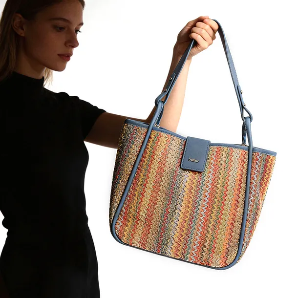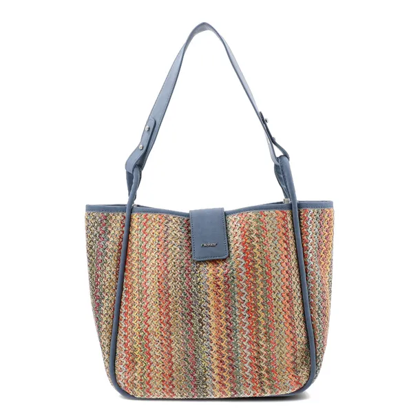 Torebka 2 w 1 damska Rieker, z plecionego materiału tekstylnego z elementami materiału syntetycznego o sztywnej formie z długimi uchwytami do noszenia na ramieniu i praktycznym wnętrzem do codziennego użytkowania, kolorowa, H1307-90