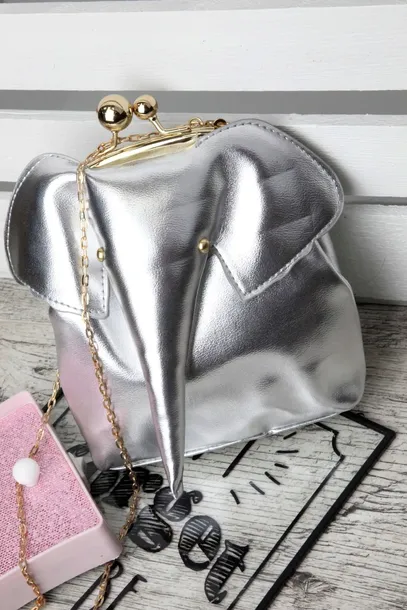 Piękna, wyjątkowo efektowna i oryginalna torebka SŁONIK na złotym łańcuszku. Zamykanie na bigle. Torebka posiada różową podszewkę.Na froncie torebki znajduje się uroczy słonik z oczkami z metalu w kolorze złota. Cudeńko! Polecamy nie tylko dla małych dziewczynek ;)