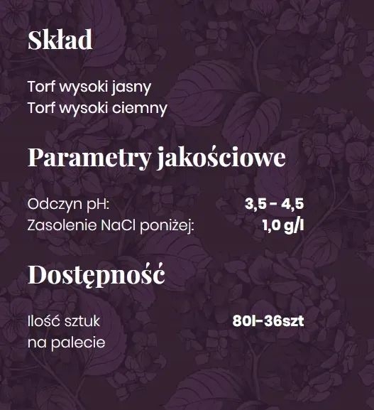- Odczyn pH: 3,5 - 4,5