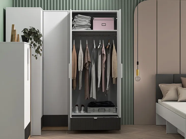 Kolekcja mebli "TORINO" to meble młodzieżowe o nowoczesnym designe. Korpusy mebli wykonane z płyty laminowanej wysokiej jakości odpornej na zarysowania, wilgoć i wysoką temperaturę, wykończone obrzeżem ABS odpornym na uderzenia i wilgoć. Fronty wykonane z płyty białej w połączeniu z MDF grafitowym matowym z frezowaniem. Kolekcja mebli obejmuje róznorodne rodzaje mebli. Meble posiadają zawiasy z cichym domykiem. Szuflady z pełnym wysuwem oraz zwiększoną ładownością dzięki wzmocnieniu dna. Meble z kolekcji TORINO to prostota, minimalizm i funkcjonalność.
