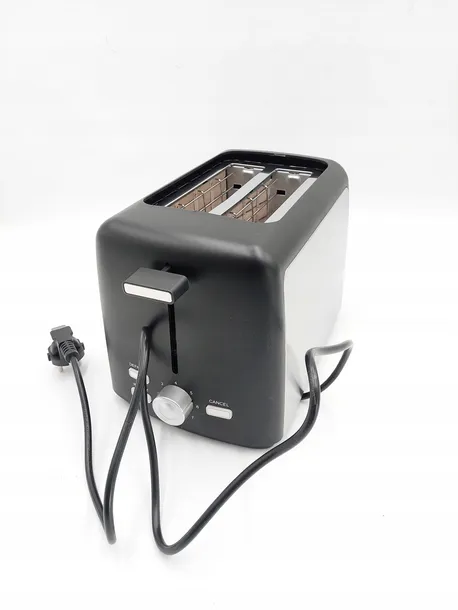 - Toaster z dwoma slotami o szerokości około 14 x 3,8 cm, obsługujący różne rodzaje chleba, w tym bagle oraz grube plastry.