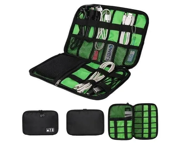 Wysokiej jakości organizer na kable, przewody, karty pamięci i wszelkie inne akcesoria do urządzeń elektronicznych! Uporządkuj i zorganizuj drobną elektronikę, nośniki danych oraz przewody w jednym, estetycznym etui które możesz wszędzie zabrać ze sobą!