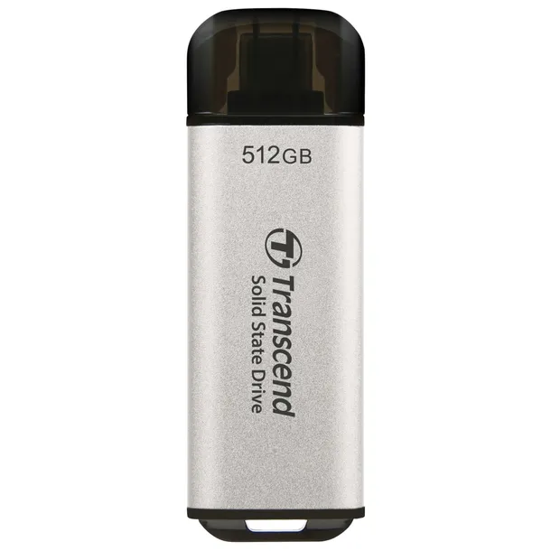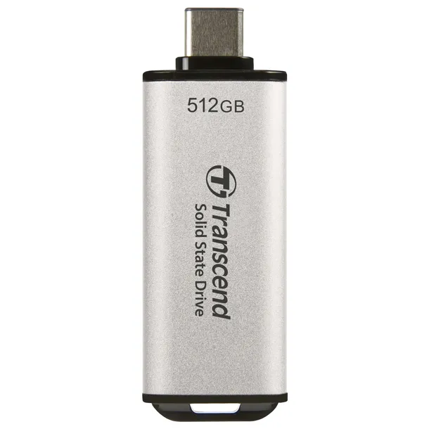 Transcend SSD ESD300S 512GB USB-C Silver to zewnętrzny dysk SSD, który łączy wysoką wydajność, dużą pojemność i nowoczesny design w klasycznym, srebrnym wykończeniu. To idealne rozwiązanie dla osób, które potrzebują szybkiego i niezawodnego magazynu danych do laptopa, komputera, konsoli lub podczas pracy w terenie.
