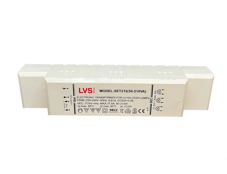 Transformator elektroniczny obniżający przemienne napięcie sieciowe ~230V/50Hz do poziomu 11,6V. Jego zaletą jest wysoka sprawność (małe straty cieplne), niewielkie gabaryty i mała waga. Zamknięty jest w obudowie izolacyjnej z tworzywa sztucznego. Jego przeznaczenie to zasilanie żarówek halogenowych o napięciu 12V AC i łącznej mocy od 50W do 210W.