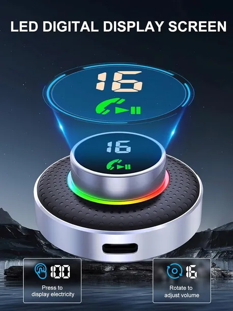 Powiększone mechaniczne pokrętło sterujące tego samochodowego adaptera Bluetooth Aux ułatwia odbieranie/odrzucanie/rozłączanie/ponowne wybieranie połączeń w trybie głośnomówiącym oraz zwiększanie/zmniejszanie głośności jednym ruchem. Otaczające wspaniałe, trójkolorowe światła otoczenia dodają atmosfery i pozwalają bezpieczniej znaleźć przyciski, gdy zapada noc.